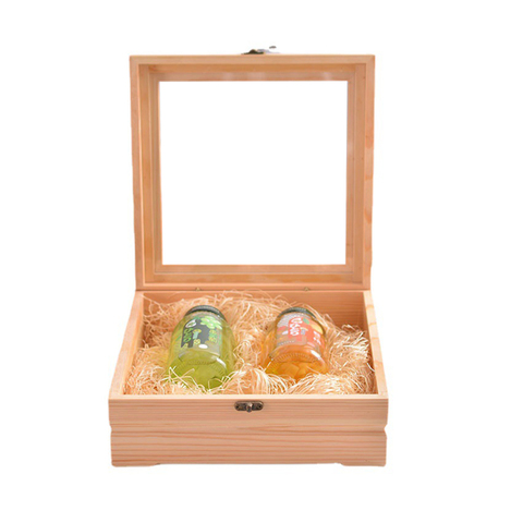 사각 모양 소나무 자연 색상 슬라이딩 투명 투명 뚜껑 선물 상자 포장 목걸이 반지 보석 상자 나무