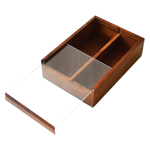 절묘한 달 케이크 티백 커피 가방 저장 플립 투명 뚜껑 나무 저장 상자 선물 상자 잠금